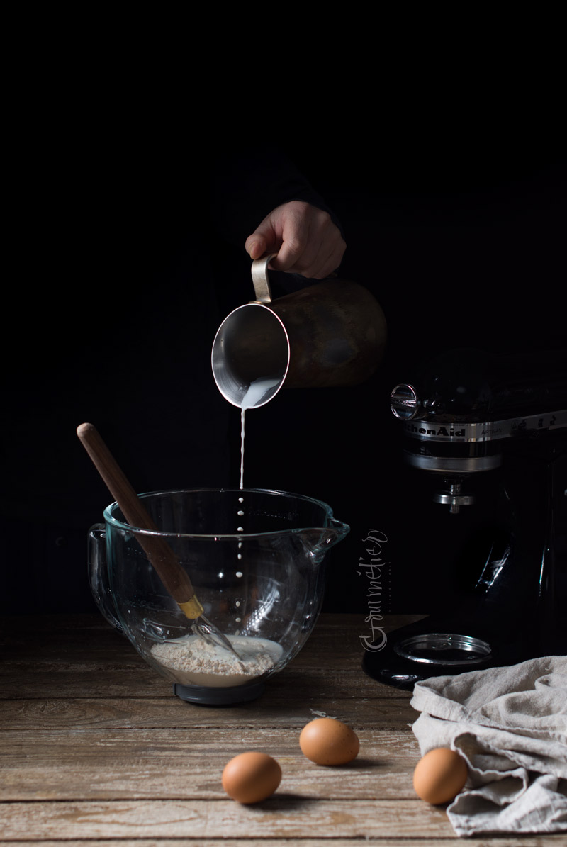 Añadimos la leche templada y mezclamos bien para realizar un prefermento rápido.