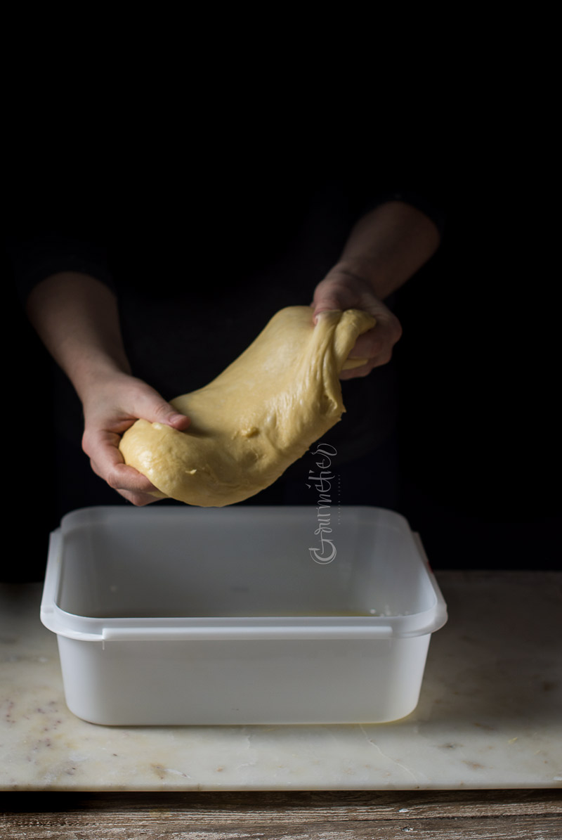 - Tenéis que usar una harina con bastante fuerza, ya que el amasado es intenso y hacemos 3 fermentaciones.