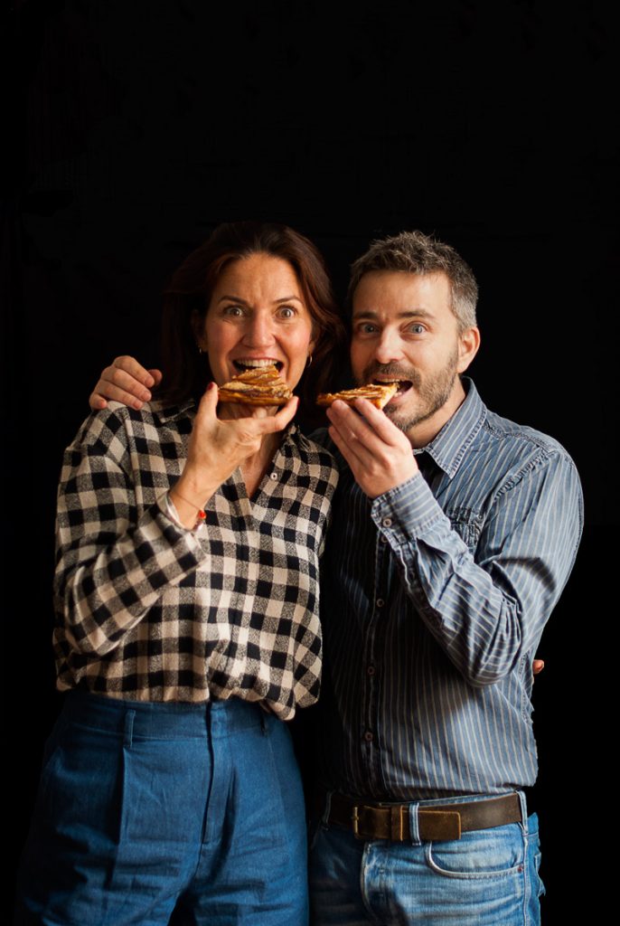 Llega el gran día (sigo atacadito – definitivamente la meditación budista no es lo mío) y por fin llegan a casa Samantha, Javier y por supuesto José. Enseguida la conversación se hace muy amena. Samantha es muy cercana y natural, y charlamos como si nos conociéramos de toda la vida. Hablamos de todo: de mí (de mi pasión por la cocina, de mi experiencia como bloguero, de mi trabajo como traductor), pero también de ella y de su vida. Disfrutamos todos de los dulces que he preparado para la ocasión: un brioche con chocolate, unos petits choux rellenos de crema muselina de naranja y cúrcuma, una tarta de manzana con hojaldre casero y unos cremosos de vainilla y leche de oveja. Creo que a Samantha le han chiflado la tarta y los petits choux. ¡Qué alegría!